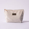 A sleek toiletry bag in soft white velvet with gold details. It holds your everyday beauty essentials and small items in a practical way, both at home and while traveling. Also an excellent gift option.